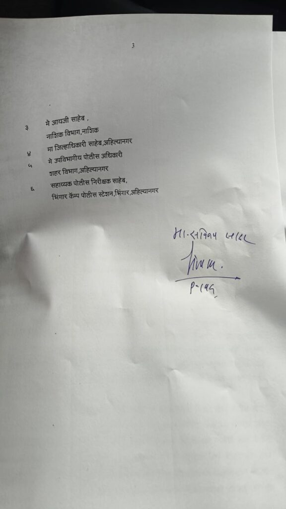 ५. माननीय उपविभागीय पोलीस अधिकारी, शहर विभाग, अहिल्यानगर.
